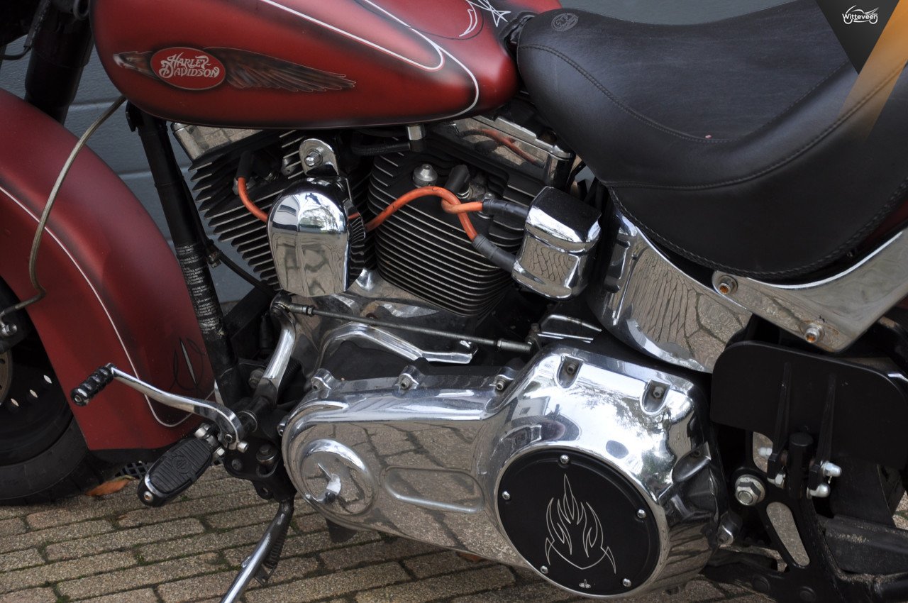Kijk eens hier: een Harley-Davidson FLSTF FatBoy 96 (dat is dus met het nieuwe, brede achterwiel) in een prachtige staat! (not)