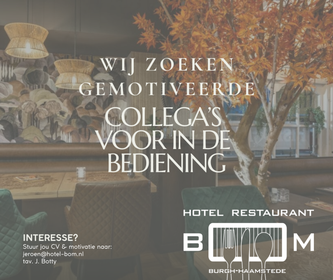 🌟 Vacature: Medewerker Bediening (PT/FT) – Hotel Bom, Burgh-Haamstede 🌟